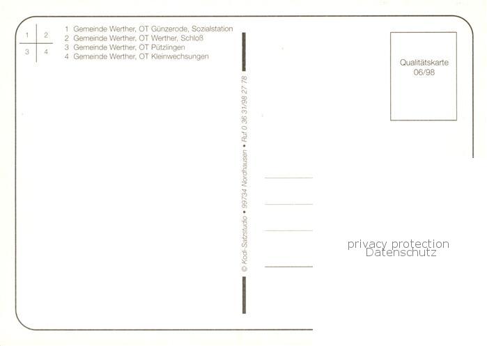73840433 Werther Nordhausen Guenzenrode Sozialstation Werther Schloss Puetzingen Kleinwechsungen postalisch nicht gelaufen Erhaltung siehe scans [FriedD77] KatCode: 11110016062063