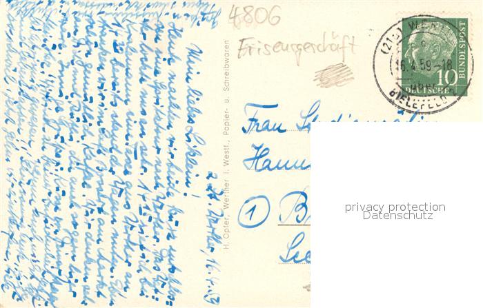 73704343 alte Postkarte Werther Westfalen Altes Fachwerkhaus Frieseurgeschaeft postalisch gelaufen Erhaltung siehe scans [LiesaD40] KatCode: 11110005754052