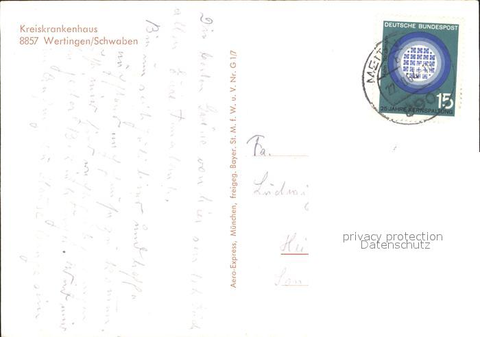72225896 alte Postkarte Wertingen Kreiskrankenhaus Fliegeraufnahme postalisch gelaufen Erhaltung siehe scans KatCode: 11110009773182