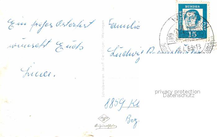 72842163 alte Postkarte Wertingen Schloss Marktplatz Stadtpfarrkirche Hauptstrasse postalisch gelaufen Erhaltung siehe scans [KathaD81] KatCode: 11110009773182