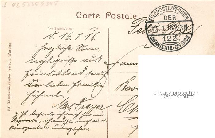 73850096 carte postale Wervicq Wervik West-Vlaanderen Belgie Place Saint Martin Hôtel de Ville postalisch gelaufen Feldpostexpedition (Stempel) Erhaltung siehe scans [FriedD77] KatCode: 11070033000832
