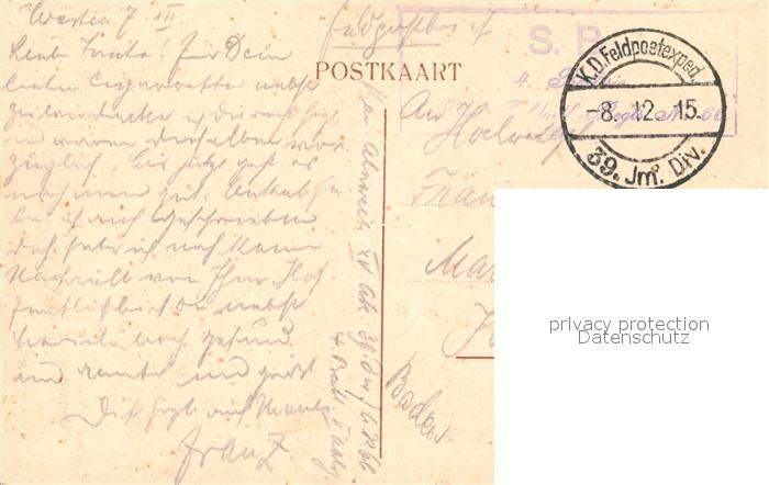 33373658 carte postale Wervik Statieplaats postalisch gelaufen Feldpost – Stempel Erhaltung siehe scans [LiesaD40] KatCode: 11070033000832