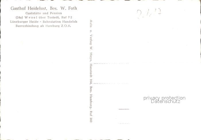41585968 Wesel Nordheide Gasthof Heidelust postalisch nicht gelaufen Erhaltung siehe scans Alte Ansichtskarte Postkarte hz_W Katcode 11110003353036