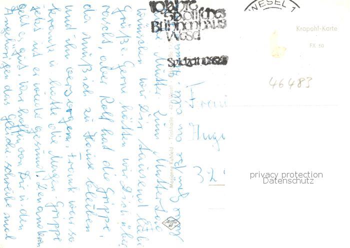 73857903 alte Postkarte Wesel Rhein Ackerstrasse Tannen Haeuschen Hochhaus Kath Kirche Berliner Tor Ev Kirche Turnhalle Hochhaus Koppersmuehle postalisch gelaufen Erhaltung siehe scans [FriedD77] KatCode: 11110005170048
