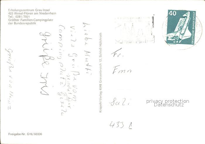 72069452 alte Postkarte Wesel Rhein Erholungszentrum Grav Insel Fliegeraufnahme postalisch gelaufen Erhaltung siehe scans KatCode: 11110005170048