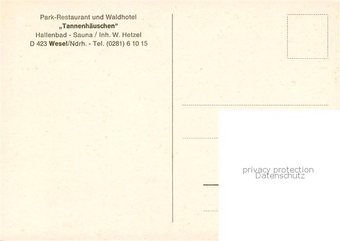 73843998 Wesel Rhein Park Restaurant und Waldhotel Tannenhaeuschen postalisch nicht gelaufen Erhaltung siehe scans [WerneD78] KatCode: 11110005170048