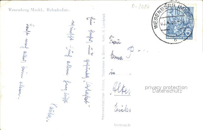 32179370 alte Postkarte Wesenberg Mecklenburg Bahnhofstrasse postalisch gelaufen Erhaltung siehe scans KatCode: 11110013055074