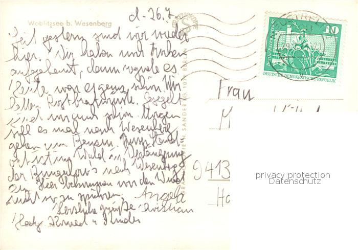 73722420 alte Postkarte Wesenberg Mecklenburg Kanusportzentrum am Woblitzsee Gastraum Terrasse postalisch gelaufen Erhaltung siehe scans [WerneD78] KatCode: 11110013055074