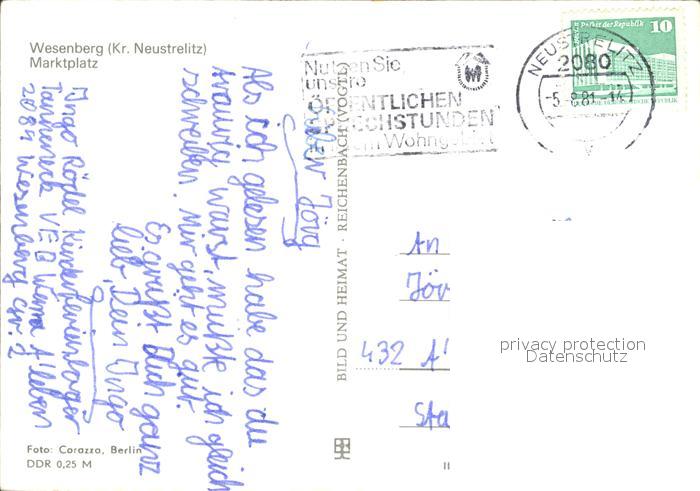 72067951 alte Postkarte Wesenberg Mecklenburg Marktplatz postalisch gelaufen Erhaltung siehe scans KatCode: 11110013055074
