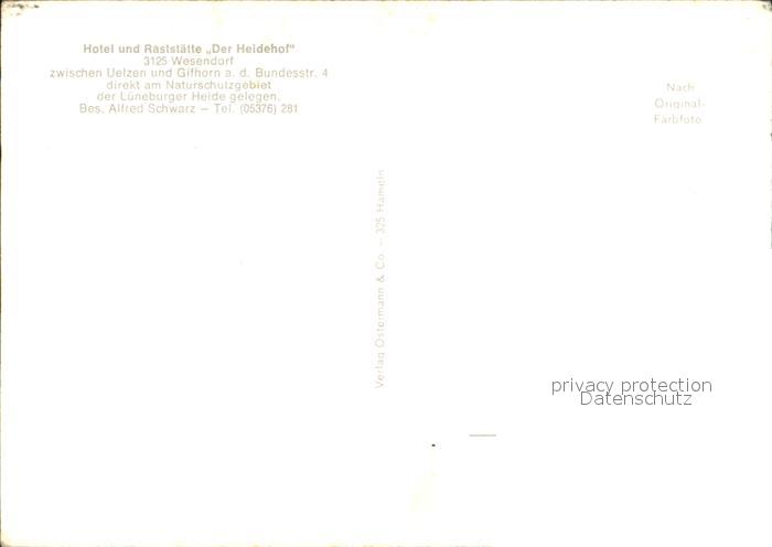 72524310 Wesendorf Niedersachsen Hotel Raststaette Der Heidehof Naturschutzgebiet Lueneburger Heide postalisch nicht gelaufen Erhaltung siehe scans KatCode: 11110003151038