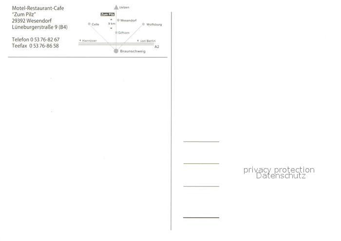 73714652 Wesendorf Niedersachsen Restaurant Motel Zum Pilz postalisch nicht gelaufen Erhaltung siehe scans [LiesaD40] KatCode: 11110003151038