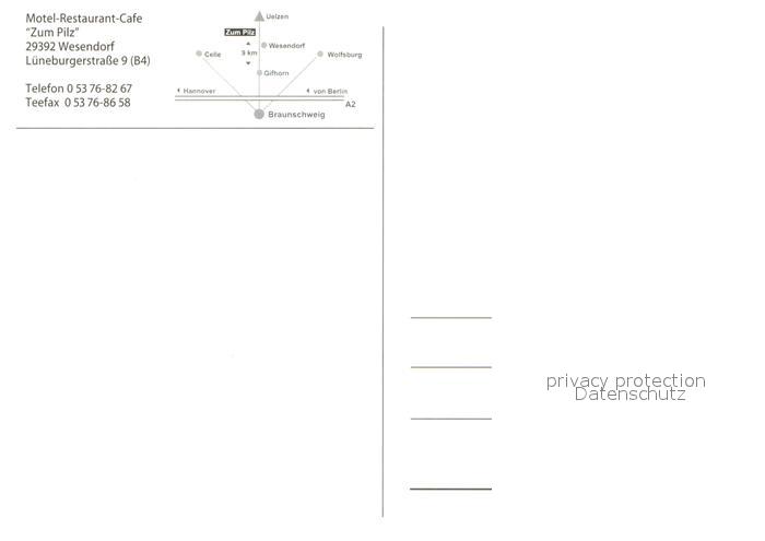 73714661 Wesendorf Niedersachsen Restaurant Motel Zum Pilz postalisch nicht gelaufen Erhaltung siehe scans [LiesaD40] KatCode: 11110003151038
