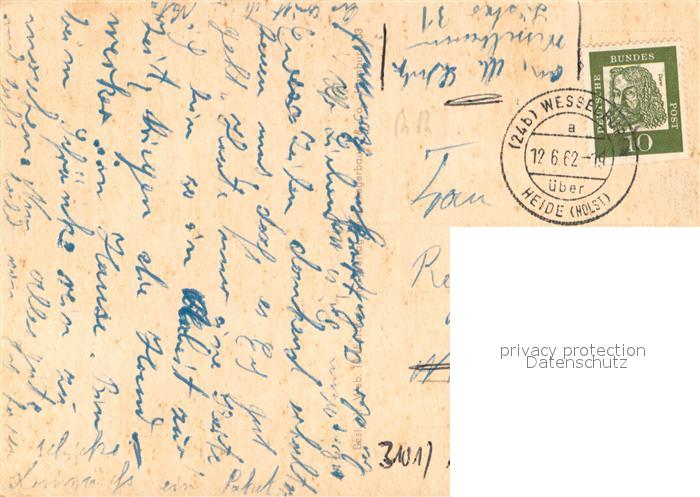 73731930 alte Postkarte Wesselburen Markt Hebbelhaus Parkanlagen Wasserturm Kirche Schule Museum Ehrenmal postalisch gelaufen Erhaltung siehe scans [FriedD77] KatCode: 11110001051127