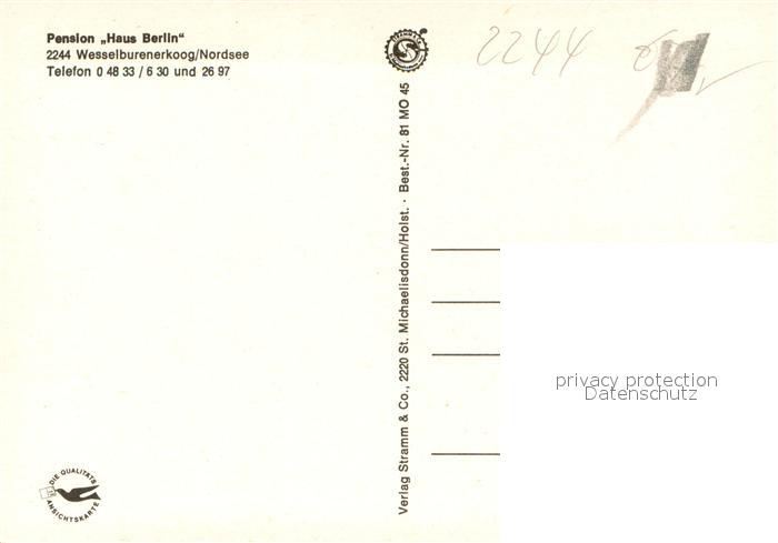 73673986 Wesselburenerkoog Pension Haus Berlin postalisch nicht gelaufen Erhaltung siehe scans [WerneD78] KatCode: 11110001051129