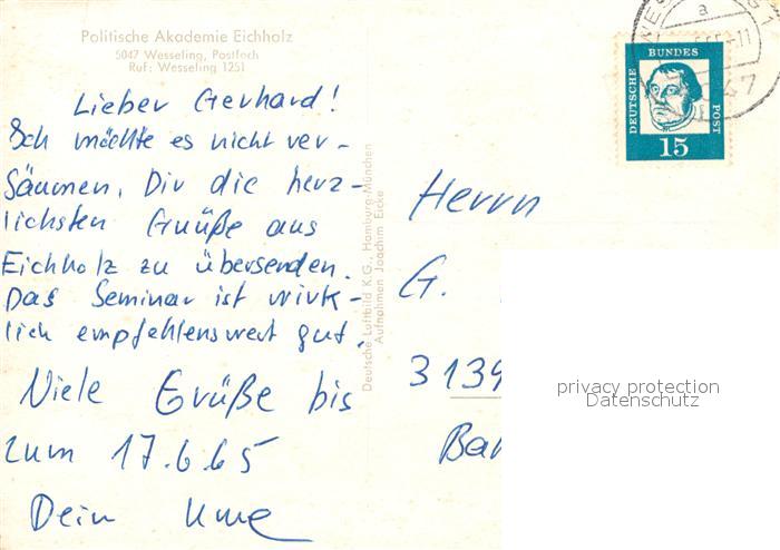 72962620 alte Postkarte Wesseling Politische Akademie Eichholz postalisch gelaufen Erhaltung siehe scans [NatalD47] KatCode: 11110005362040