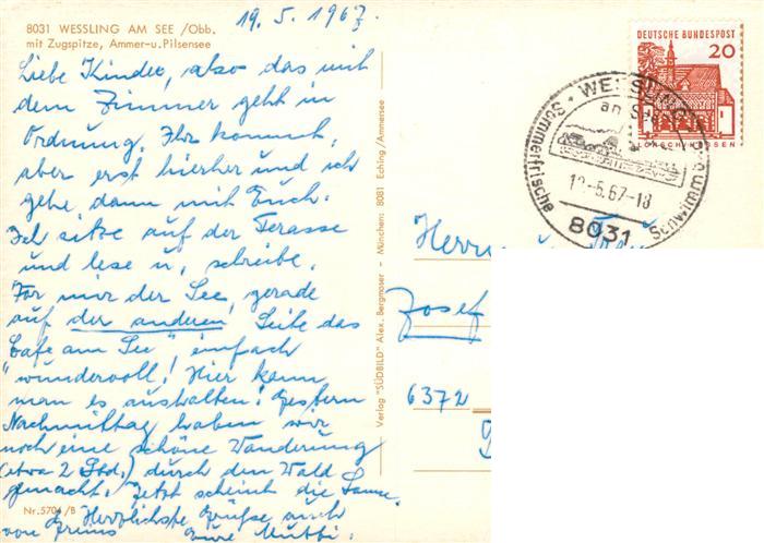 73903917 Wessling Starnberger See Fliegeraufnahme mit Zugspitze Ammer und Pilsensee postalisch gelaufen Erhaltung siehe scans [FriedD77] alte Postkarte Frie Katcode 11110009188144