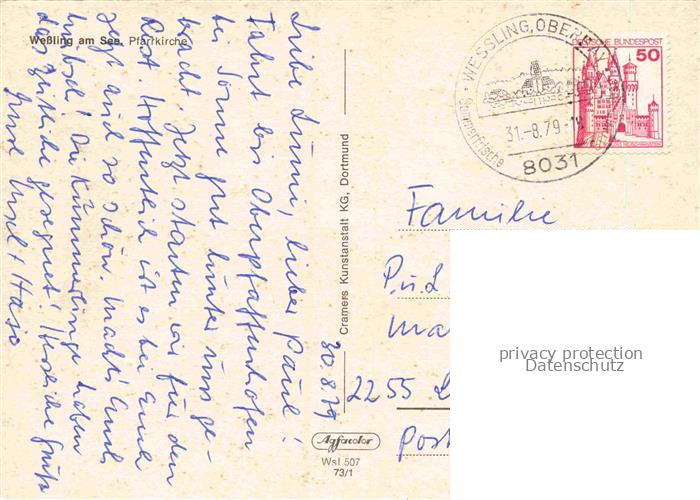 74153573 alte Postkarte Wessling Starnbergersee Oberbayern Pfarrkirche postalisch gelaufen Erhaltung siehe scans [FriedD77] KatCode: 11110009188144