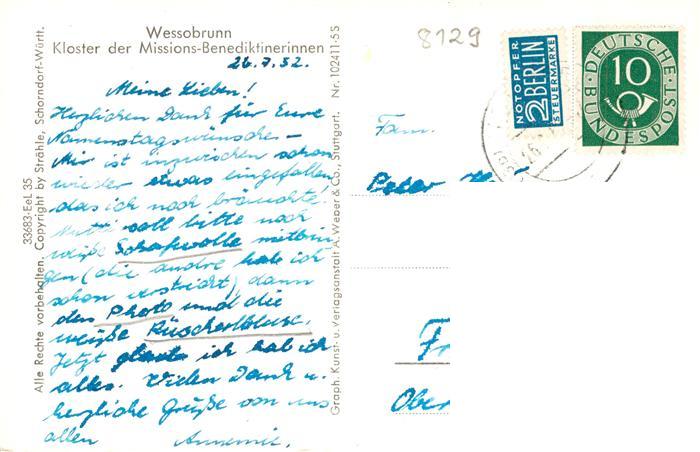 73900167 alte Postkarte Wessobrunn Kloster der Missions-Benediktinerinnen postalisch gelaufen Fliegeraufnahme Erhaltung siehe scans [FriedD77] KatCode: 11110009190158