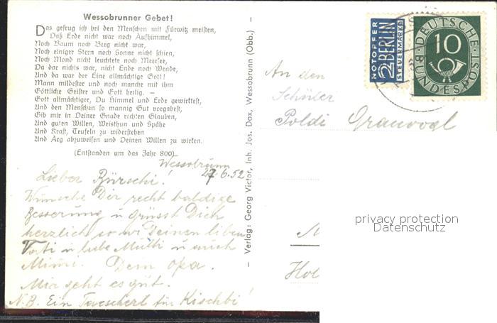 72129364 alte Postkarte Wessobrunn Weilheimer Gebet Steinplatte postalisch gelaufen Erhaltung siehe scans KatCode: 11110009190158