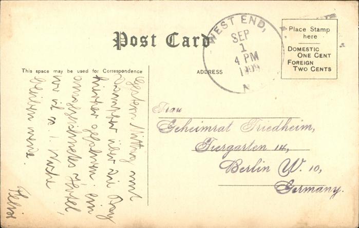 11109585 old postcard West End New Jersey Takanassee Hotel Long Branch postalisch gelaufen KatCode: 14140