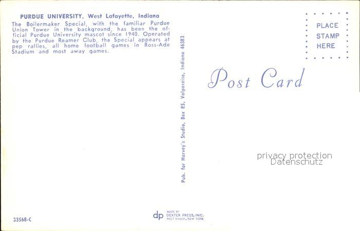 72490734 West Lafayette Indiana Purdue University Boilermaker Special Union Tower postalisch nicht gelaufen Erhaltung siehe scans KatCode: 14140160000000