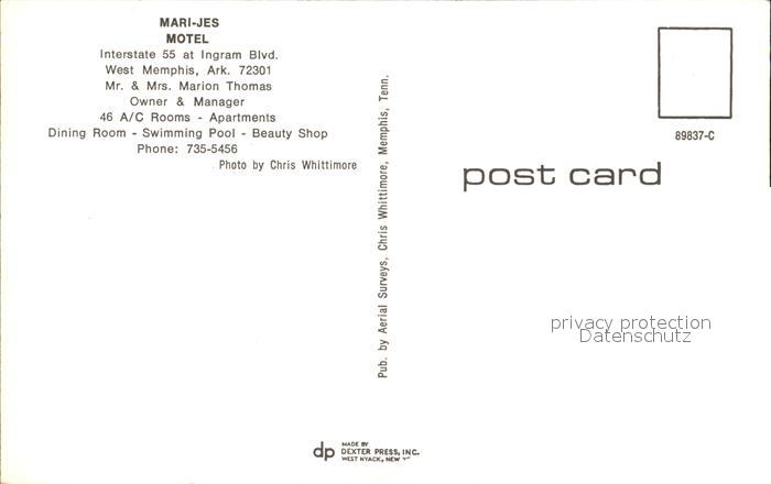 72161552 West Memphis Mari Jes Motel aerial view postalisch nicht gelaufen Erhaltung siehe scans KatCode: 14140040000000