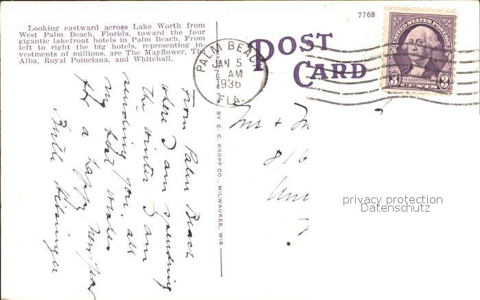 11693767 old postcard West Palm Beach Panoramic view across Lake Worth postalisch gelaufen Erhaltung siehe scans KatCode: 14140110000000