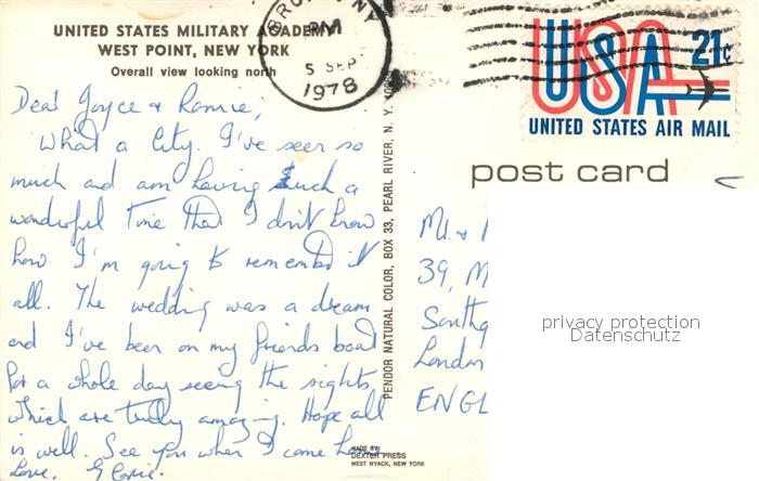 73131697 old postcard West Point New York United States Military Academy postalisch gelaufen Erhaltung siehe scans [KathaD81] KatCode: 14140340000000