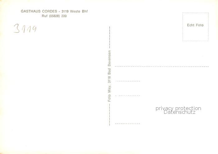 73852592 Weste-Bahnhof Gasthaus Cordes postalisch nicht gelaufen Erhaltung siehe scans [WerneD78] KatCode: 11110003360026