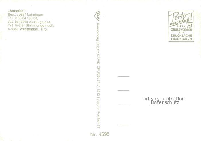 74153196 Westendorf Brixental Tirol AT Aunerhof Gasthof mit Tiroler Stimmungsmusik postalisch nicht gelaufen Erhaltung siehe scans [WerneD78] KatCode: 11390335070420