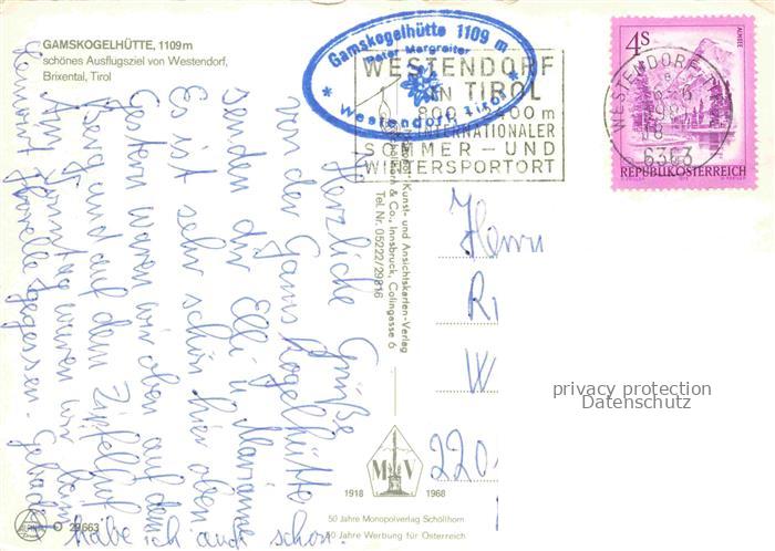 74153178 alte Postkarte Westendorf Brixental Tirol AT Gamskogelhuette postalisch gelaufen Erhaltung siehe scans [WerneD78] KatCode: 11390335070420