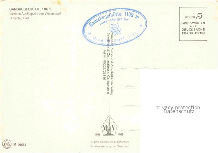 74153182 Westendorf Brixental Tirol AT Gamskogelhuette postalisch nicht gelaufen Erhaltung siehe scans [WerneD78] KatCode: 11390335070420