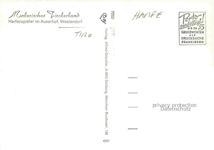 74152783 Westendorf Brixental Tirol AT Harfenspieler im Aunerhof postalisch nicht gelaufen Erhaltung siehe scans [WerneD78] KatCode: 11390335070420