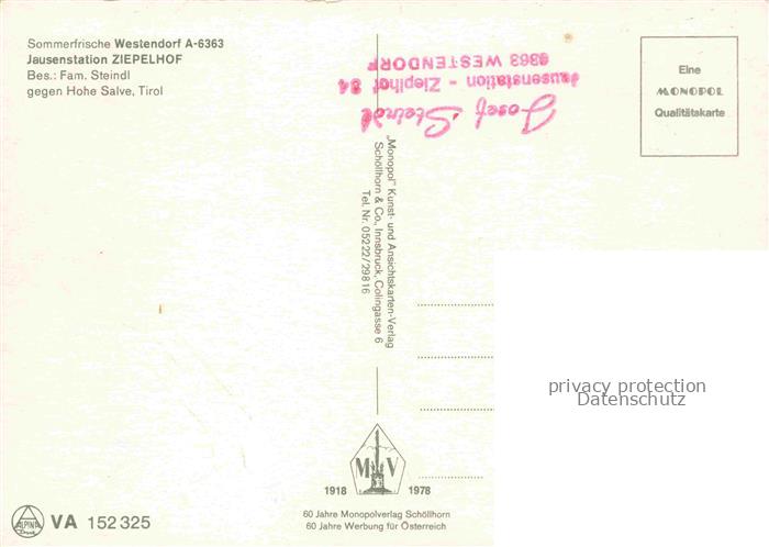 74153180 Westendorf Brixental Tirol AT Jausenstation Ziepelhof Terrasse postalisch nicht gelaufen Erhaltung siehe scans [WerneD78] KatCode: 11390335070420