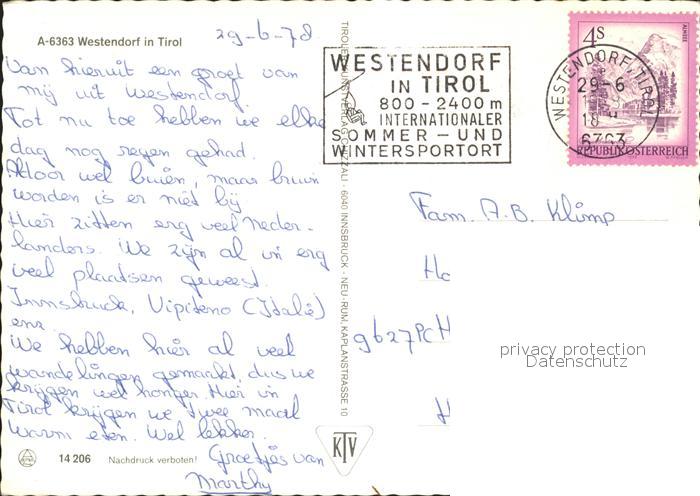 72240370 alte Postkarte Westendorf Tirol postalisch gelaufen Erhaltung siehe scans KatCode: 11390335070420