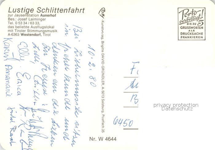 73185196 Westendorf Tirol Annerhof Pferdeschlitten Musikkapelle postalisch nicht gelaufen Erhaltung siehe scans [LiesaD40] KatCode: 11390335070420