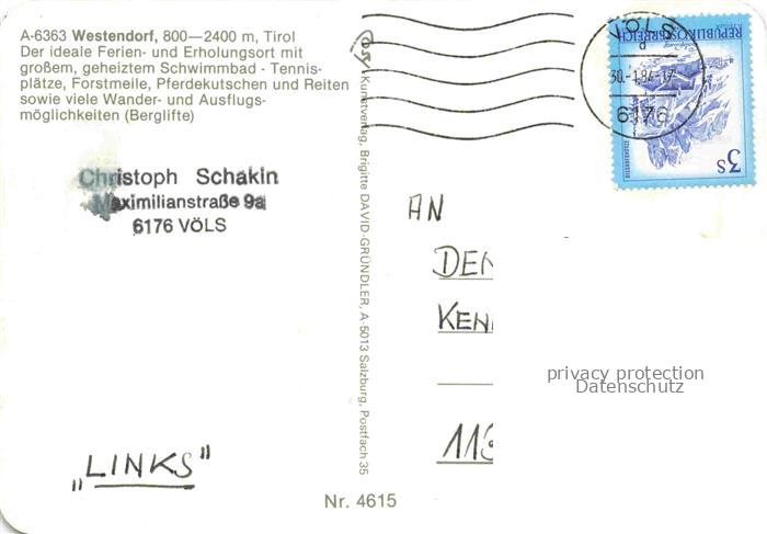 74157580 alte Postkarte Westendorf Tirol AT Nachsoellberg Schwimmbad Kirchturm Erholungszentrum Bergpanorama Sommer Dorfplatz Tennisplatz postalisch gelaufen Erhaltung siehe scans [Karloger] KatCode: 11390335070420
