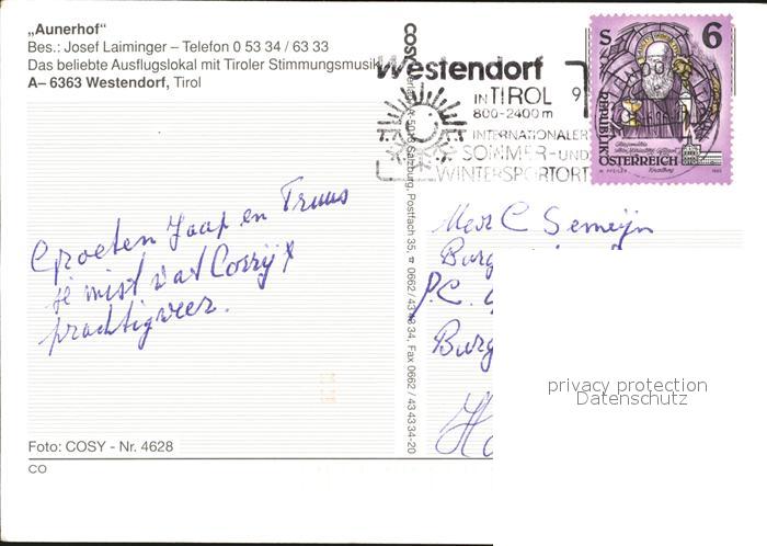 72413011 alte Postkarte Westendorf Tirol Aunerhof postalisch gelaufen Erhaltung siehe scans KatCode: 11390335070420