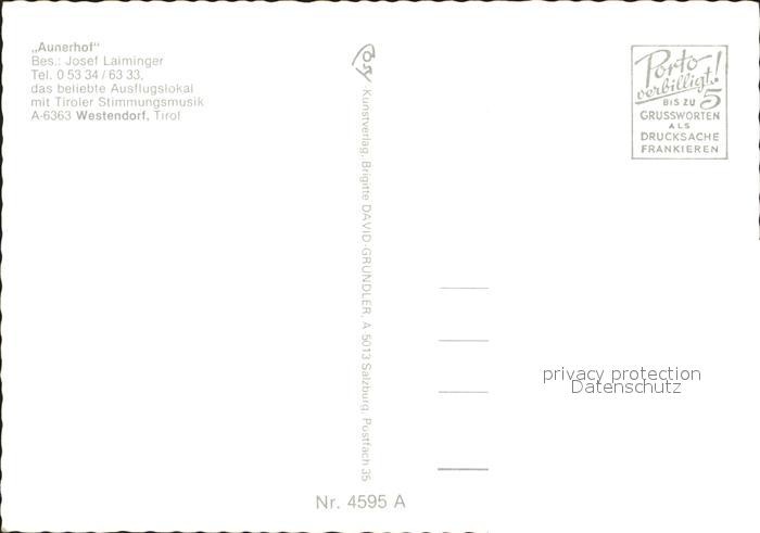 72049509 Westendorf Tirol Aunerhof Harmonika postalisch nicht gelaufen Erhaltung siehe scans KatCode: 11390335070420