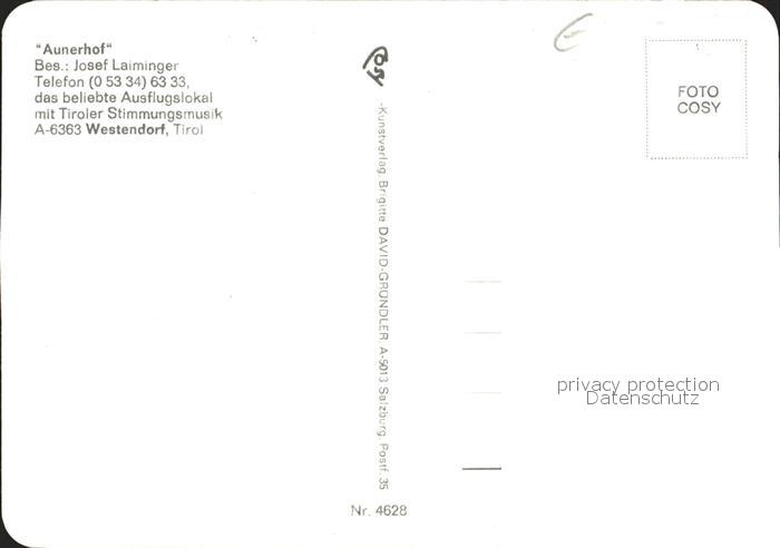 72274798 Westendorf Tirol Aunerhof Jausenstation postalisch nicht gelaufen Erhaltung siehe scans KatCode: 11390335070420