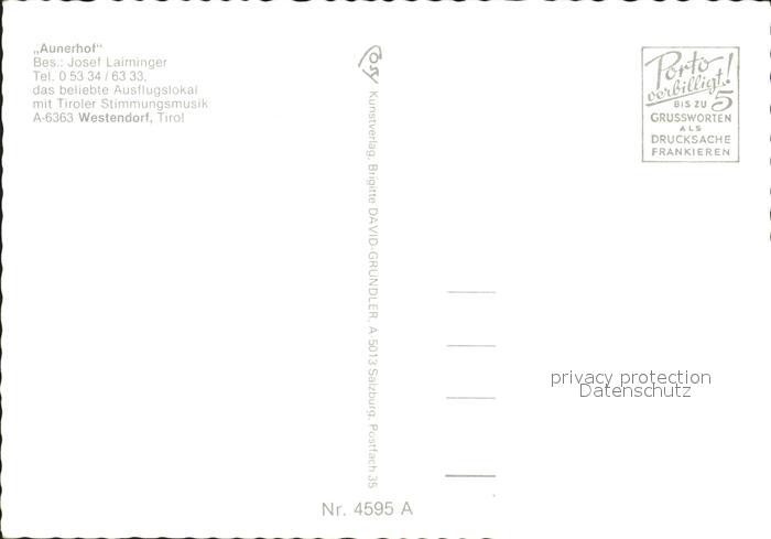 72049495 Westendorf Tirol Aunerhof Musikinstrument Harmonika postalisch nicht gelaufen Erhaltung siehe scans KatCode: 11390335070420