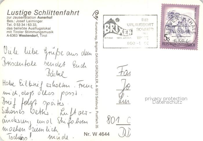 73185218 alte Postkarte Westendorf Tirol Aunerhof Pferdeschlitten Musikkapelle postalisch gelaufen Erhaltung siehe scans [LiesaD40] KatCode: 11390335070420