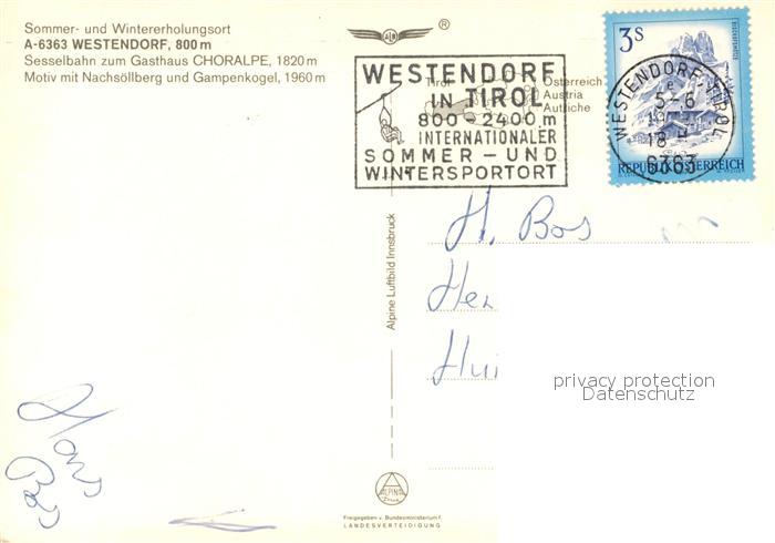 73219761 alte Postkarte Westendorf Tirol Bergwandergebiet Nachsoellberg Gampenkogel Fliegeraufnahme postalisch gelaufen Erhaltung siehe scans [FriedD77] KatCode: 11390335070420