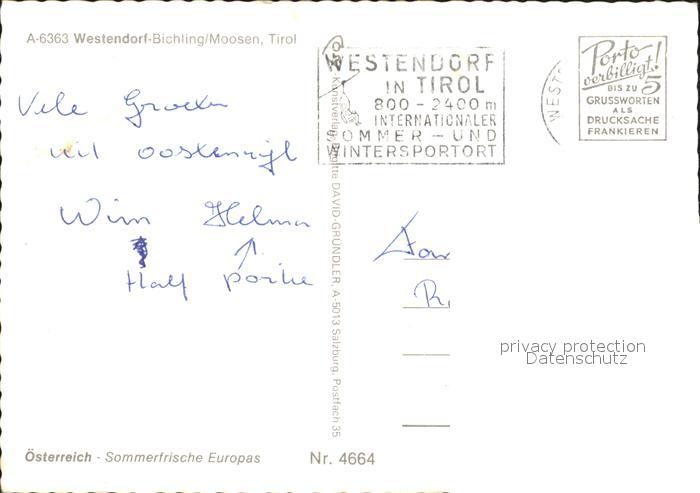 71974426 alte Postkarte Westendorf Tirol Bichling Moosen Hohe Salve postalisch gelaufen Erhaltung siehe scans KatCode: 11390335070420