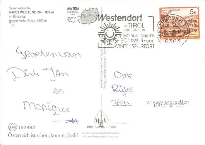 72498435 alte Postkarte Westendorf Tirol Brixental Hohe Salve postalisch gelaufen Erhaltung siehe scans KatCode: 11390335070420