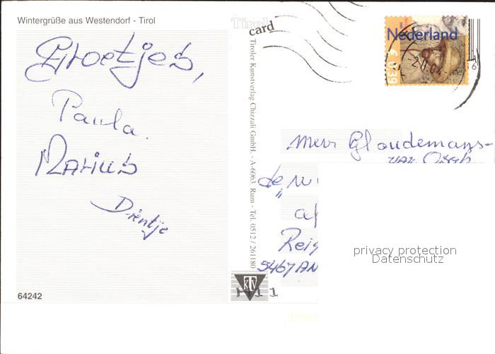 72092297 alte Postkarte Westendorf Tirol Dorfpartie im Winter Kirche postalisch gelaufen Erhaltung siehe scans KatCode: 11390335070420