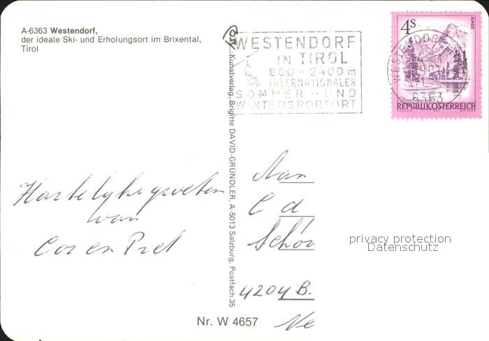 72093057 alte Postkarte Westendorf Tirol Dorfpartie Kirche postalisch gelaufen Erhaltung siehe scans KatCode: 11390335070420