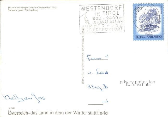72524241 alte Postkarte Westendorf Tirol Dorfplatz gegen Nachsoellberg Kirche Eiszapfen Wintersportzentrum postalisch gelaufen Erhaltung siehe scans KatCode: 11390335070420