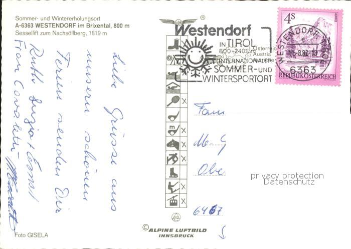 72532447 alte Postkarte Westendorf Tirol Fliegeraufnahme postalisch gelaufen Erhaltung siehe scans [AndreD76 kt113box] KatCode: 11390335070420