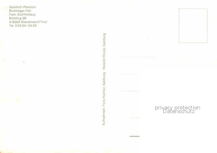 72791283 Westendorf Tirol Gasthaus Pension Bichlinger Hof postalisch nicht gelaufen Erhaltung siehe scans [LiesaD40] KatCode: 11390335070420